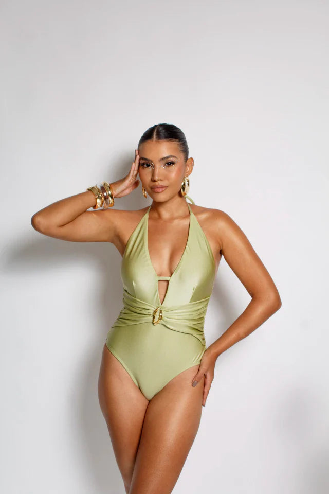 Apresentamos o Maiô Grumari, a peça perfeita para quem busca um visual elegante e moderno. Com um decote profundo e uma frente única, este maiô se destaca pela sua sobreposição de tecido frontal, adornada com um detalhe em aviamento orgânico dourado que confere um charme especial.