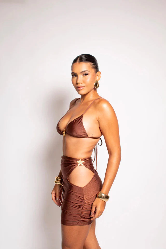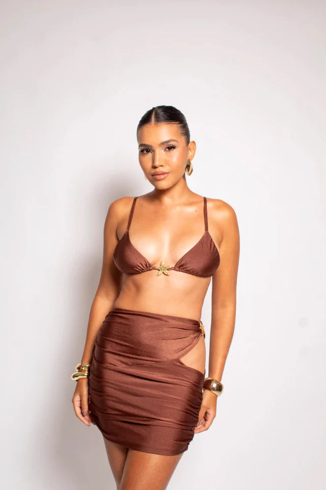 Os detalhes fazem toda a diferença! O aviamento de estrela toda trabalhada, banhada a ouro com verniz italiano não só adiciona um brilho especial, como também garante durabilidade e resistência à oxidação. Ideal para compor looks para festas e saídas com amigos, esta saia é a peça que você precisa para brilhar.