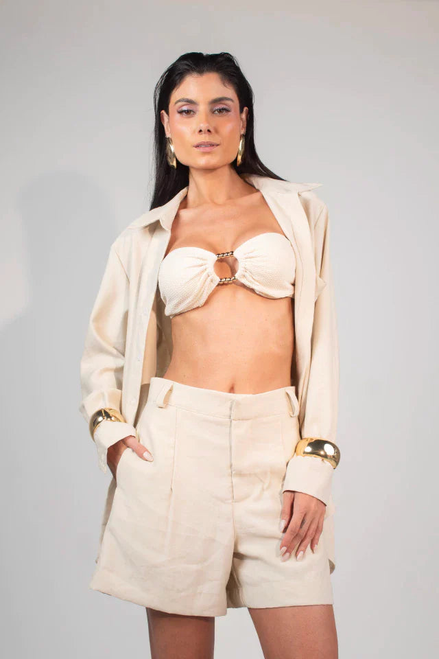 Short Sicília confeccionado em tecido de fibras naturais de linho e viscose, garantindo um caimento impecável e toque sofisticado.
