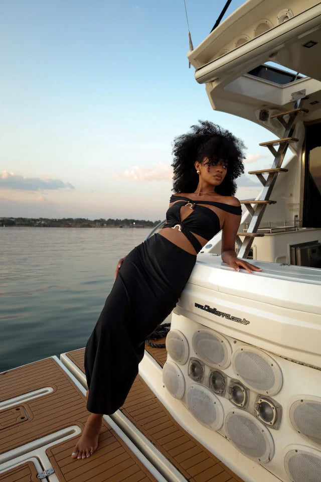 • Modelagem ombro a ombro, decote em gota e um recorte estratégico que valorizam a silhueta .